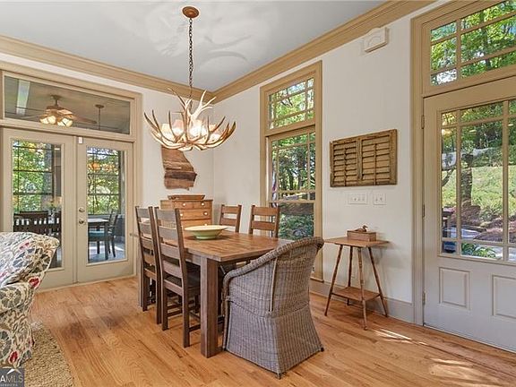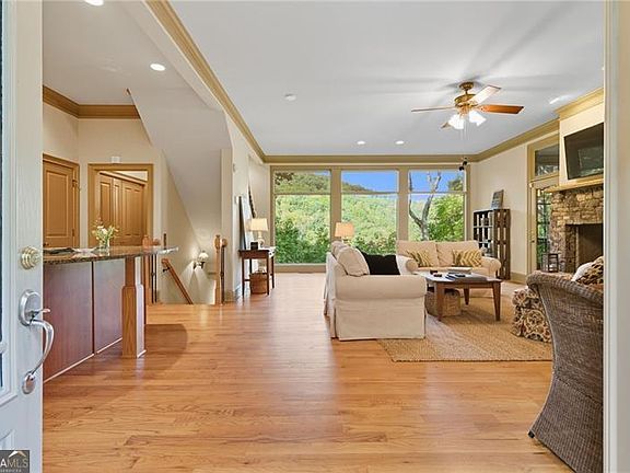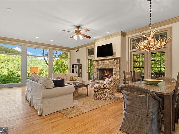 When you enter this home, your first thoughts will be "WOW!" as you see panoramic mountain views with Amicalola Falls in the distance. The warmth of the wood floors and stone surround of the great room fireplace let you know you are in a place of peace. Walk through a pair of French doors into the large sun room with telescoping EZ-Breeze windows, and continue this viewing experience with heated slate floors and the home's second fireplace. Upstairs, the owner's retreat features a roomy bathroom with a separate reading/viewing room. The terrace level has 2 bedrooms, 2 bathrooms, and a second family room. There is a huge deck on the terrace level with plenty of room for outside entertainment. Grill on the main level with ease by connecting your gas grill to the available line in the deck! This home has a whole house generator, and the ever elusive flat driveway. Come see the best deal in Big Canoe and make an offer today! Priced to sell!!
