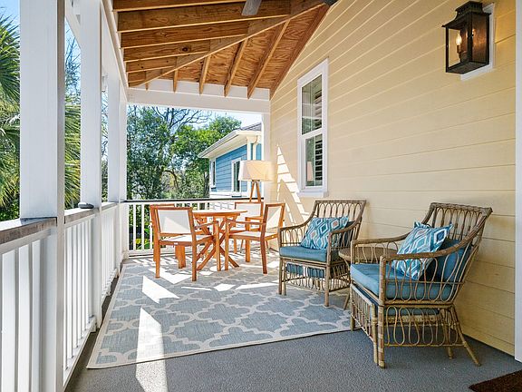 Off the kitchen, the screened-in back porch feels like a second living room- complete with a dining table for four and two comfortable chairs perfect for slow mornings or evening cocktails.