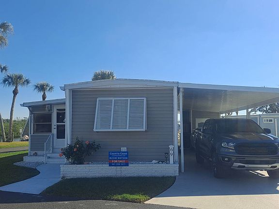 Enjoy the Sunrise from your Back Porch and Sunsets from Your Front Porch! This Home is Just a Few Steps to Your Dock and Boat ! Situated Right On Gottfried Creek , just a Few Minutes Boat Ride To the Best Fishing and Boating in The World . Be in The Gulf in Minutes by Boat. Hop in your Car and You're at Englewood Beach in 5 Minutes. This Home Is Brand New Renovation and Remodeled Perfectly and Comes Fully Furnished ! ***NEW >>> Rubber Roof > SubFloor and Flooring Throughout >Kitchen Cabinets with Island and Stainless Steel Appliances including Dishwasher Oven and Refrigerator,>Quartz Counter Tops,> Electric Panel 'Drywall Throughout,>Insulation Throughout, >2 Mini-Splits , Central AC/Heat Throughout,>Carport >Paint >Hot Water Heater and Washer and Dryer Inside ! Don't Miss This One ! Situated Right On Thr Water with Beautiful Views ! Come See What Englewood FL has to Offer ! Fishing,Boating,Golf,Restaurants,Beaches,Art and the Relaxation of The Beach Town Vibe ! Low Lot Rent of only 450 a month which includes Lawn Care ! This Home Is The Best Location in The Small Park of only 95 Homes ! Park Has Boat Davits to take your boat out of the water and a Private Boat Launch as well as Storage for your Trailer right in your Back Yard !