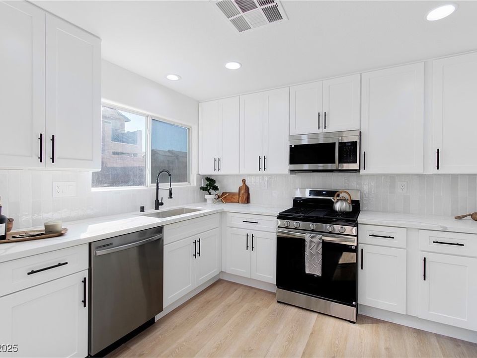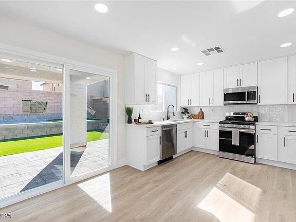 Welcome to this beautifully remodeled single-story home featuring 3 bedrooms! Located in a prime area just off Las Vegas Blvd, this home offers brand new upgrades throughout, including new flooring, soft-close cabinets, quartz countertops, brand new back slider, brand new bathrooms, luxury tiles, new baseboards, and more. Brand new fully landscaped backyard with a large covered patio! Enjoy the convenience of being near new shops, great dining options, a new hospital, and quick freeway access. A perfect blend of style, comfort, and location. Move in ready!