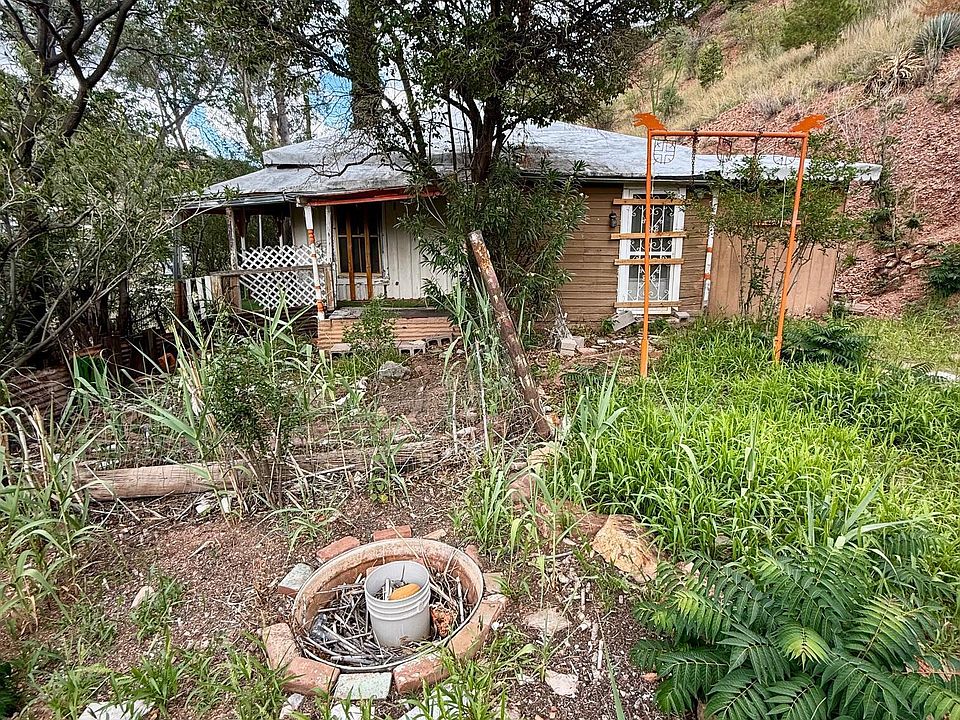 Be under the B! This charming miners cabin is perched above all others directly under the iconic Bisbee B! Revel in your own private secluded oasis with sweeping views of the Mule Mountains, Lavender Mine and Old Bisbee. This 3 bed, 1 bath 1912 fixer upper features a secret garden, mature shade trees and covered deck from which to take in the panoramic views and perfect year round weather. Live the Old Bisbee lifestyle with restaurants, coffee shops, breweries, post office and library just steps away!