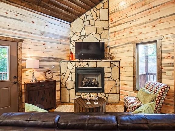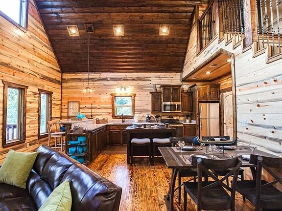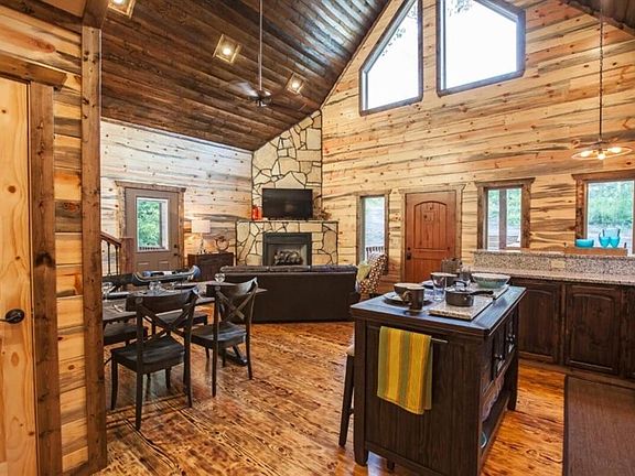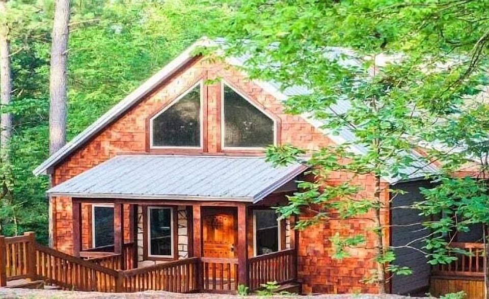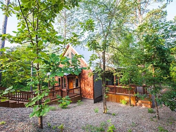 Introducing the False Creek Cottage, an exquisite cabin for sale tucked away in the picturesque woodlands of Oklahoma with a seasonal creek. This cabin is on an acre of wooded land, hidden from the road by a forested berm for added privacy. False Creek Cottage boasts two lavish master suites, meticulously designed for your comfort – one conveniently located on the lower level and another perched upstairs, each furnished with custom king-size beds. In addition to these sumptuous sleeping arrangements, a queen-over-queen bunk with a pull out twin sized trundle bed below it as well as a futon sleeper is thoughtfully provided to accommodate larger groups, comfortably sleeping up to 10 guests and all accompanied by Smart TVs. Stepping onto the covered deck, you'll discover a splendid outdoor haven, featuring an elegant dining area, a cozy gas fireplace, and a soothing hot tub. Just off the back deck a charming fire pit surrounded by comfortable chairs awaits with a large private playground just a stone’s throw away. Spanning an impressive 1500 square feet of living space, this cabin's open floor plan creates an inviting atmosphere. The chef's kitchen is a culinary enthusiast's dream, replete with modern amenities and ample counter space. Call today! This won't last long!