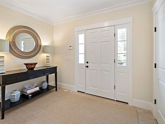 Welcome to this stunning Gambrel Colonial in the desirable Country Club neighborhood! This home features an expansive front porch that gets beautiful morning sun. Enter through a gracious double foyer, with a spacious living room/study and formal dining room flanking the sides. The recently upgraded eat-in kitchen boasts a large island, Viking appliances, and a wet bar, flowing into a cozy family room with custom window seats and a gas fireplace. Step outside to a large deck and manicured backyard with a custom dog run and fire pit, offering privacy that's ideal for entertaining. The luxurious master suite includes a spa-like bath and oversized walk-in closet. Three additional bedrooms and two full baths are upstairs. The finished walk-out lower level has a bonus room/rec room, full bath, and mudroom. Custom renovations and designer fixtures blend timeless finishes with function. Located near schools, the commuter rail, restaurants, and the Brook Path, this property is a dream