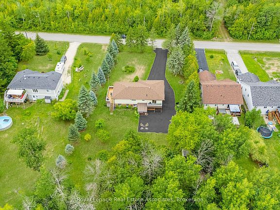 Location & lot size are what set this property apart from others. 69 George Ave is just steps from Georgian Bay, minutes from Collingwood or Wasaga Beach. Set on a private 0.87-acre lot with your own treed forest, trails, flat green space, gardens & plenty of paved parking for vehicles, trailers, equipment & more!!! This 3-bedroom, 2-bath raised bungalow has an open-concept main floor with large bright windows throughout, laminate floors, freshly painted & updated lighting. The kitchen features a gas stove, ample cabinetry, excellent storage, a peninsula & overlooks the beautiful backyard. The large living & separate dining area has a walk-out to an oversized back deck, great for morning coffee. The primary bedroom offers a double closet, semi-ensuite & its own private balcony, while two additional bedrooms also feature double closets & natural light. The main floor is finished with a 4-piece bathroom. You will be pleased with the over size of each room in this home. The finished basement includes a separate entrance to the garage, a rec room with a gas fireplace & above-grade windows, a 3-piece bathroom, an office area with tile flooring, a laundry room & more storage. The large backyard is built for relaxation & entertaining with a firepit area, gardens, mature trees, a large paved patio area, a large shed, under-deck storage & potential for a pool or basketball court. A 25x30 two-car garage double deep depth perfect for workshop or extra car parking & a driveway with space for 10 or more vehicles mean there's parking for family, friends & even your boat or RV. This well-maintained home combines practical living with incredible outdoor space in a sought-after location, making it a fantastic opportunity to enjoy everything Wasaga Beach has to offer. Just minutes from Collingwood, the beach, local trails, shopping & a short walk to Georgian Bay, your dream home awaits. Roof(2021), New Doors on Shed(2024), Deck Boards(2024). Sealed Driveway(2025).