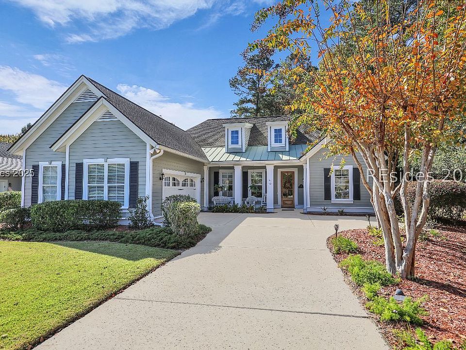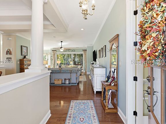 Offering a rare combination of privacy, view and location this impeccably maintained Lowcountry home is set centrally within the prestigious Hampton Hall community. The open layout makes way for seamless living from the front foyer which enters into a light-filled great room and formal dining room. The tastefully remodeled chef's kitchen with stainless appliances, wine cooler and eat in dining area overlooks the beautifully landscaped backyard with your very own orange tree! Luxury primary bathroom with claw soaking tub and spa inspired tiled shower. Two guest bedrooms share a fully remodeled bathroom. A separate office with glass, French doors, a custom designed walk-in pantry and separate laundry room with sink complete the interior space. Large screened in porch and fenced backyard with serene water views. Wooded community property on right side of house adds to the tranquil setting. The oversized 2 garage also has room for a golf cart. New roof 2022, HVAC 2024. This amenity rich community boasts pickleball, tennis, golf (optional), fitness center, zero entry outdoor pool, splash pad, playground, indoor pool and spa, multiple restaurants and social activities and clubs for all. All this and only moments from charming Old-Town Bluffton's shops and restaurants! Welcome home to 69 Glencairn Avenue
