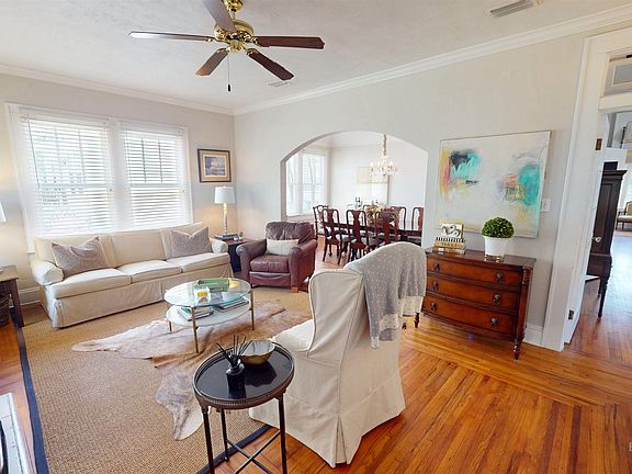 Welcome to 69 Glenwood Street in Mobile, AL! This adorable bungalow style home is full of classic character with beautiful inlaid hardwood floors, 9ft ceilings, and natural light. Located in the Midtown area, it features, 3 bedrooms, 2 full bathrooms, an inviting living room, formal dining room, and a spacious kitchen with ample cabinet storage and a breakfast bar. Third bedroom is currently being used as an office. The primary bedroom has two closets, a sitting area, and an attached bath. Outside there is an attached one car carport, fenced in back yard, patio, and storage building. Updates per seller include: fortified roof (2024), HVAC (2022), tankless water heater (2022) and newer appliances including an ice maker and wine fridge. Enjoy the convenience of being close to shops, restaurants, parks, and everything Midtown Mobile has to offer. Make your appointment today! Buyer to verify all information during due diligence.
