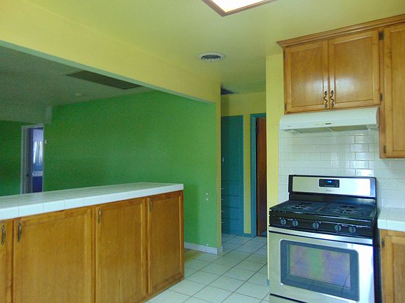 Cute , cozy home! 3 bdrms, 1.5 baths. Kitchen has tile counters and floors, stainless steel stove and a large breakfast bar with built in cabinets. Nice size living room with masonry corner fireplace , large windows and ceiling fan. Main bdrm has 1/2 bath and door to outside patio. Hall bath has tile counter and tub/shower. Two car detached garage, large lot with trees and lots of room to use your imagination. Fountain in back yard doesn't work Prior to close of escrow and with acceptable offer, seller will put new comp roof and treat for termites in garage!