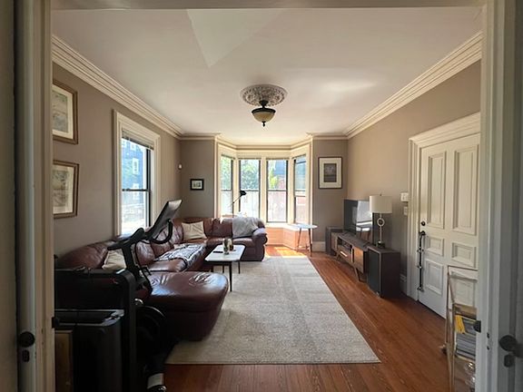 Remarkable First floor Apartment offers Endless Charm! Located in a Beautifully Restored Victorian, this home presents an Expansive Eat-in kitchen with Granite countertops, Plenty of cabinetry and stainless steel appliances. Exquisite Period details, Original Crown Moldings, Rich Oak hardwood floors all throughout. Grand Living room complete with pocket doors, Formal dining room or a double living room featuring a decorative Marble Fireplace. Size-able bedrooms, Floor to Ceiling Windows pour in tons of Natural light. Equipped with Central air, Washer and Dryer and additional designated storage space. Parking for Two Vehicles.