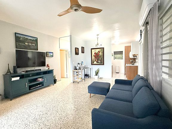 Lovely home in a nice, convenient West End neighborhood. The kitchen and baths of this mid century modern home have been nicely renovated. New windows and A/C were just installed, and the wonderful terrazzo floors have been refinished. Solar hot water, new water pump and UV purification. Six solar panels with marine batteries. Enjoy fruit trees galore in this great yard with mature coconut palms, pomegranate, starfruit, avacado, guava and noni. Convenient to Frederiksted and beautiful West End beaches, with good roads and easy access to the highway. Carport and bonus covered space offer flexibility to easily build out. Take advantage of the peek-a-boo sea views from the concrete roof by installing a sun deck, or the large slightly elevated back yard by building another home here!