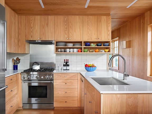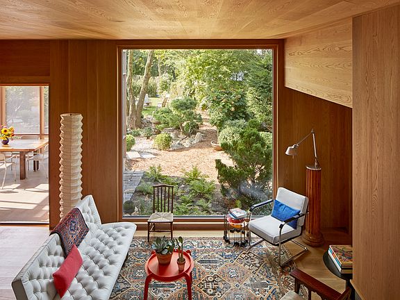 This exquisitely renovated, architect owned 4 bedroom, 3 bath 1919 Dutch Gambrel honors the history of the house, but the interior architecture reflects a modern sensibility and a strong connection to the landscape. The interior is a wooden jewel box with white oak floors, walls and ceilings throughout the house. Large windows bring in light while connecting the space to the outdoors. On the first floor there is a comfortable living room with fireplace, separate dining room, master suite and modern kitchen. Off the kitchen is a large screened porch that transitions the space between indoors and outdoors. On the second floor is an en suite queen guest room and two guest rooms that share a bath, one with twin beds which could also function as an office, and another with a full bed. Outside, surrounded by lush landscaping and gardens is a gunite pool with electric safety cover. Perfectly located on a quiet coveted Village street, close to the bay, restaurants, farmer's market and all the Village has to offer. A rare find.
