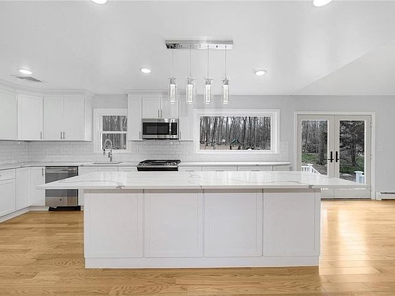 Stunningly gut-renovated (2019/20) house on a dream (flat) 2-acre property in Pound Ridge's most sought after neighborhoods. True turn key! High-efficiency spray foam, new high-efficiency dual pane windows, new hardwood floors, new bathrooms, new kitchen, too much to list! The house boasts an open concept beautiful new eat-in kitchen with stainless appliances & calcatta quartz counters (10ft island) that opens to the family room (cathedral ceiling) with wood burning fireplace. Separate living room with french doors/wood burning fireplace. 1st fl private office. 2nd fl has a Large master with 2 closets (1WIC/1standard) and a beautiful en suite/huge marble walk-in shower. Three more carpeted bedrooms and a full large bath round out the second floor. Large basement: family room/wall-to-wall carpet, laundry room, 2 car garage. Beautiful large deck & huge level yard with a playset and firepit. 3 min to town pool, park, Scotts Corner, 10 min to New Canaan, Stamford & Bedford, or the Merritt!