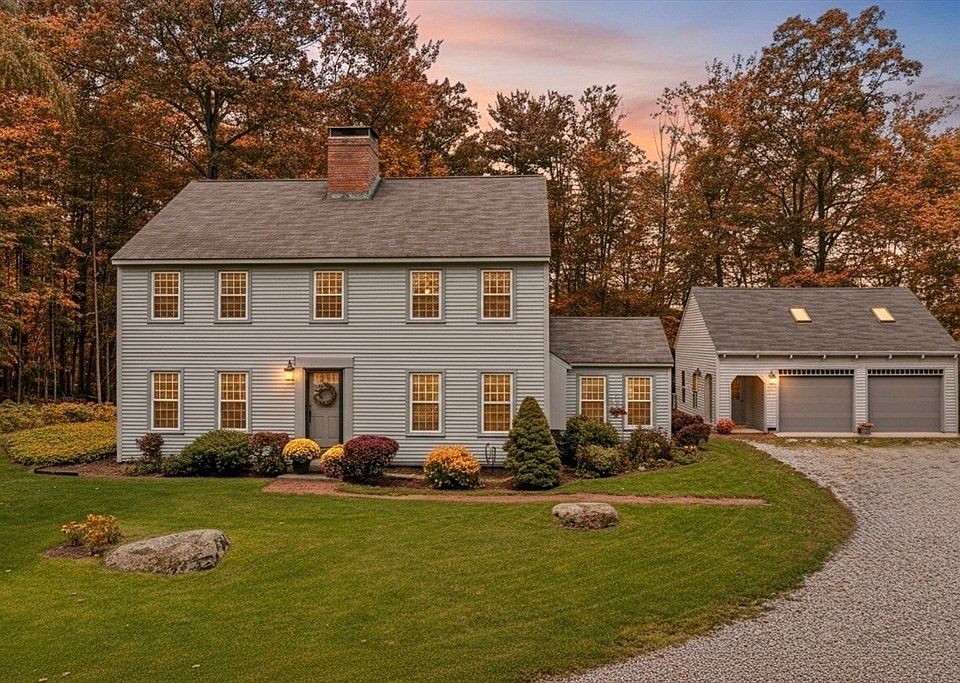 BACK ON MARKET, GREAT NEW PRICE, previous buyer’s home didn’t sell. AMAZING PRIVACY on over 5 ACRES IN A STUNNING AREA, this property offers Timeless Charm and Modern Updates in a Beautifully Crafted Reproduction Colonial with Wide Pine Floors, Exposed Wood Beam Ceilings, and rich character. Cherry Kitchen featuring Granite Counters, Center Island, Double Oven and Wood Stove. A Large Living Room features a Wood-Burning Fireplace. Upstairs you'll find a Generous Primary Suite with dual closets and a ¾ bath, an oversized full bath, and 2 Bedrooms. The Finished Third Level offers 2 additional rooms. A Detached Two-Car Garage includes a Finished Guest Suite above with a ¾ bath, ideal for extended family or visitors plus extra storage space in the garage basement. Outside, enjoy an Oversized Deck, a sunken above-ground pool with surrounding brick patio, and tranquil nature views.Endless possibilities await in this unique and charming property!! FREE ONE YEAR HOME WARRANTY INCLUDED.