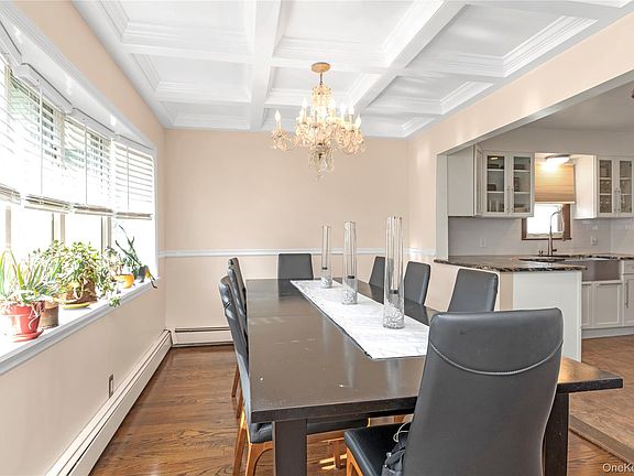 Inside, the first floor features 2 spacious bedrooms, a full bath, and a bright living room with an accent wall and electric fireplace, includes high hats. The formal dining area showcases a tray ceiling and bay window, while the updated kitchen includes white cabinets, granite countertops, tile flooring, and gas cooking. Gleaming hardwood floors run throughout.