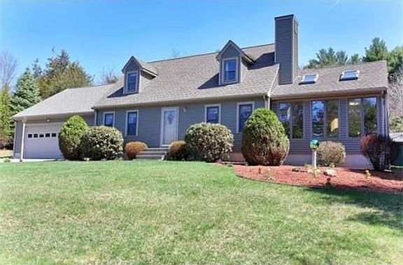 Meticulously maintained Cape perfectly situated on an acre of land! Nothing to do but move in! This home will welcome you from the minute you step foot in the door. Kitchen boasts updated counter tops, tile back splash, and plenty of cabinet space. Large family room w/ French doors, cathedral ceiling, retractable UV glass windows, and motorized skylights offer tons of natural light and is the perfect spot for entertaining. Formal dining room provides plush wall to wall carpet and wood burning fire place! Formal living room, den and full bathroom complete the main living area. 3 generous sized bedrooms are all complete with wall to wall carpet and ample closet space. Full partially finished basement w/ tons of potential. Updates within past year include; new roof, asphalt driveway, maple flooring and carpet on first floor! Oversized 2 car garage & storage shed complete the package! This home must be seen to be appreciated.
