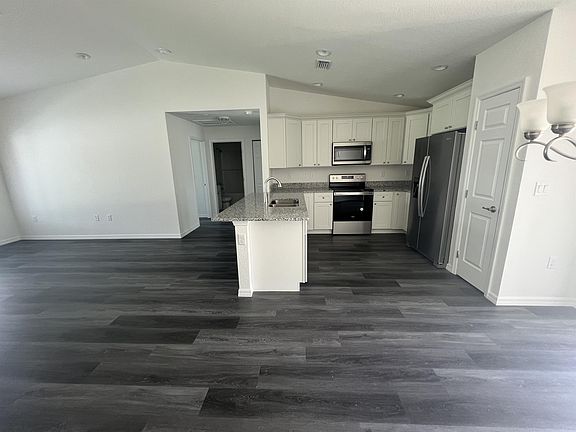 Welcome to this brand-new construction home in the peaceful community of Silver Springs Shores! This 3-bedroom, 2-bathroom residence offers a modern open floor plan with vaulted ceilings and abundant natural light. The kitchen features stainless steel appliances, a pantry, and ample cabinetry for storage.