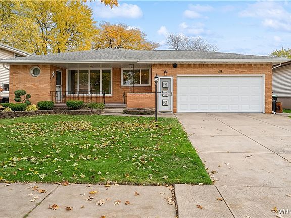 Welcome home to your hard to find 4 sides brick, 3br, 1.5 bth, 2 car garage RANCH in the heart of Town of Tonawanda! Updates include furnace (25) w/existing AC, vinyl windows throughout, some updated PVC and pex plumbing, vinyl fully fenced yard, leaf guard for gutters and more! Bright and airy living room, formal dining room and all 3 br’s have beautiful oak hardwoods throughout, partially updated eat in kitchen w/oak cabinets, amazing full bath updated completely w/tile shower, marble top counters, toilet, flooring and lighting, first floor stackable laundry make for easy single floor living, BONUS, dry, poured finished full basement area adds over (35x15) 500 sq ft of living space, freshly painted, epoxy flooring, 1/2 bath, workshop area, as well as dry bar, glass block windows for security, so many places to chill outside that include Relaxing on your covered front porch, or on your open concrete porch in the fully fenced yard, or pour yourself some drinks in the 17x8 3 season room, storage shed for convenience, This one won’t last!! Offers due Monday, November 10th by 7pm.