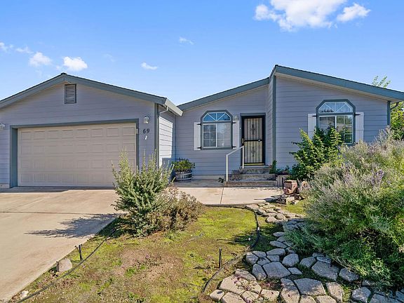 Welcome home to 69 Mesa De Oro Circle. A beautifully maintained single-level 3 bed / 2 bath residence nestled inside the peaceful 55+ Mesa De Oro community of Sutter Creek. With approximately 1,196 sq ft of living space, this cozy yet functional floor plan is ideal for comfortable everyday life. Enjoy low-maintenance living in this tranquil neighborhood close to downtown, shopping and Amador Wine Country. This beautiful single-level home offers a spacious living room, natural light and access to well maintained common grounds. Step inside to discover newly installed carpet throughout, and a bright, open living area that flows effortlessly into a roomy dining space and efficient updated kitchen. Conveniently located off of the kitchen is a spacious laundry room with access to the backward. This home has been thoughtfully maintained; the roof and siding have been refreshed within the last five years, and the HVAC system was upgraded just three years ago. The master bathroom features a modern feel, equipped with a handicap-accessible walk-in shower with built-in seating a nice blend of style and practicality. Outside, a large deck off of the living area offers a perfect spot for morning coffee or evening relaxation, overlooking a fully fenced backyard that backs up to the community pool. The property includes an attached two-car garage with an opener for convenience. Living in Mesa De Oro Subdivision means enjoying the luxuries of a peaceful, well-kept and friendly community with low fees and amenities. HOA perks include a clubhouse / recreation facility, 55+ community designation, street maintenance, community landscaping, and a pool less than a minute from the front door. The lot spans about 4,791 sq ft, giving you privacy and space without overwhelming upkeep. Move in ready, great location and excellent value. Don't miss the opportunity to own a home that combines comfort, updates, and community features in one charming package. Schedule your private showing today!