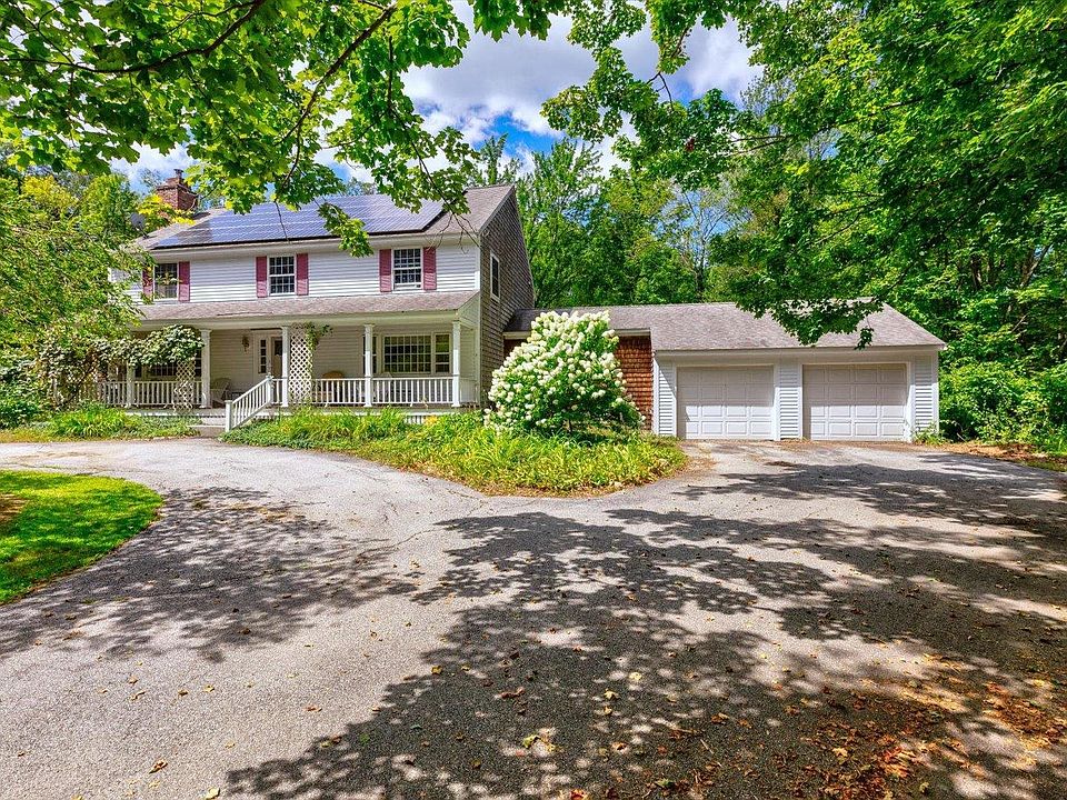 Nestled on 3.57 peaceful acres and only 7 minutes from downtown Peterborough, this classic 4-bedroom, 2.5-bath home offers the perfect blend of modern efficiency and natural beauty. Designed with sustainability in mind, the home features 27 seller owned solar panels, on demand hot water heater, and a full house heat pump providing both heating and air conditioning with dramatically reduced energy consumption and impressively low utility costs. The beautifully updated kitchen features an induction cook top, double ovens, granite counter tops with plenty of work and storage space. Built-ins throughout the home provide plenty of space to store your extras. The open-concept living and dining area flows into a cozy sun room, offering a naturally lit space in which to enjoy outdoor views. Opportunity for multi-generational living in this home. A mudroom connects the main house with the 2 car extended EV charger-ready garage. A spacious front porch welcomes you home and invites you to sit and enjoy the abundant wildlife, while fruit trees and thoughtfully landscaped grounds offer space to relax, garden, and just enjoy the tranquility of your private haven. This rare gem offers generous indoor and outdoor living spaces in a private, tranquil setting—ideal for those who value comfort, privacy, and eco-conscious living. If you're seeking a low-maintenance, energy smart home with timeless charm, this is perfect for you. Open House, Saturday, October 4th, 11-1:00pm.