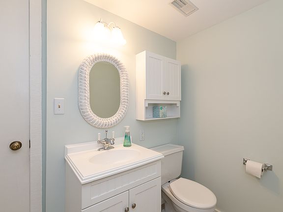 The main floor of the condo is an open concept with spacious kitchen, dining area, and comfortable living area with a wall-mounted flat-screen TV. Off the kitchen is a bath with shower. The upper level features a large master bedroom with four post king bed and sitting area overlooking the second-floor deck. The primary bedroom also contains extra sleeping capacity with a twin trundle bed and a pull-out couch. A second bedroom with two twin beds and a separate deck is also located on the same level, along with a full bath. The main entry on the backside of the condo features another deck, and two dedicated parking spaces are located adjacent to the entry area. The Harbours features a wonderful heated pool and large private association beach.