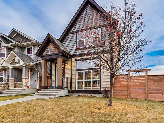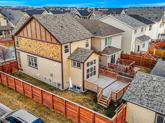 Welcome to this stunning home located in the highly sought-after Skyview Ranch community! Situated on a corner lot, this property offers an exceptional living experience, blending comfort, convenience, and modern upgrades in a fantastic location. As you enter, you’re welcomed by a spacious living area, followed by beautiful hardwood floors that flow through the kitchen and dining spaces, creating a warm and timeless atmosphere. The open-concept layout provides an ideal setting for hosting guests or enjoying quiet family time. The thoughtfully designed kitchen is perfect for any home chef, featuring sleek stainless-steel appliances, a large island, and plenty of cabinetry. A half bathroom completes the main floor. Upstairs, you’ll find three generously sized bedrooms, including a primary bedroom complete with its own private ensuite bathroom. A second full bathroom serves the additional bedrooms. The fully finished basement adds even more living space, offering a cozy living room, a bar area, a full bathroom, and a dedicated laundry room with extra storage. Step outside to the oversized deck, ideal for summer gatherings or peaceful evenings outdoors. The fully fenced backyard offers both privacy and ample room for outdoor activities. With over 2,100 sq. ft. of living space, this home also includes an oversized garage, providing plenty of room for vehicles, storage, or a workshop. Recent upgrades such as a new roof enhance both functionality and curb appeal. Just steps from a playground and walking paths, you’ll appreciate being close to outdoor recreation. The home has been meticulously maintained, and the back alley offers convenient access. An on-demand water heater ensures endless hot water for the entire household. Enjoy wonderful neighbors and the quiet, family-friendly atmosphere of Skyview Ranch, all while staying close to major roads, schools, parks, shopping, and public transit. Don’t miss your chance to make this charming home yours!
