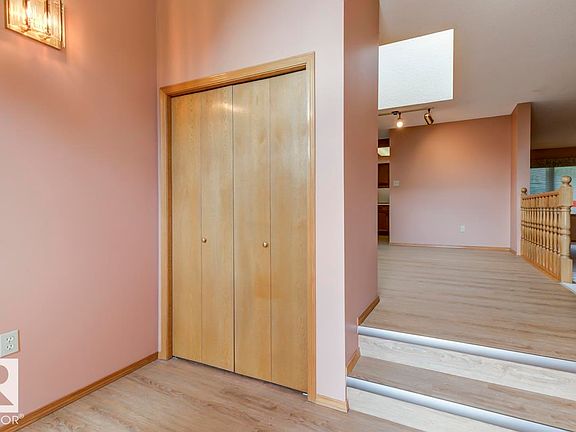 Welcome to this massive bungalow just steps from Nottingham Park, nestled in a quiet Sherwood Park cul-de-sac. Beautifully maintained by the original owner, this spacious home offers 2,200 sq ft on the main level, with 3 large bedrooms and 3 full bathrooms. The great room features both a living and family area anchored by a stunning 3-sided gas fireplace, perfect for entertaining. A skylight above the dining room fills the home with natural light, while the kitchen and breakfast nook have seamless access to the west-facing deck—ideal for outdoor dinners and evening relaxation. The main floor also includes a generous office with private exterior access, perfect for a home-based business or multi-generational living. The partly finished basement boasts a double rec room with a wet bar—ideal for a home gym, theatre, AND games room—plus an unfinished area for a workshop, storage, and mechanicals. With a double attached garage and a fully landscaped yard with mature trees and shrubs, this home is a rare find.