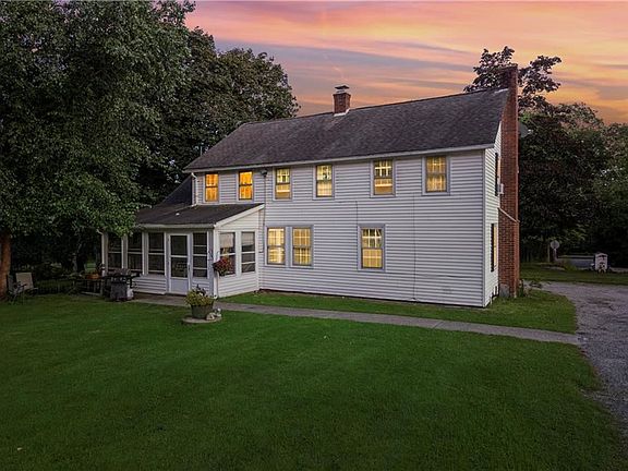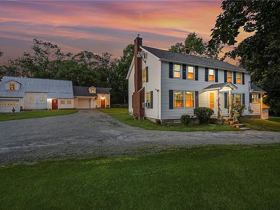 There is something special, almost magical about visiting this farm house in Autumn. Maybe it's the cool clean morning air and the dew drops on harvest pumpkins and color filled leaves. Maybe it's a peaceful walk along the old stone wall that leads you to a hidden footbridge and across a small stream feeding a nature filled private pond. Maybe it's the smell of the old growth wood used to build that beautiful rustic barn and original one room schoolhouse. Maybe it's the conjured up memories and the thoughts of yesteryear, of peace and of simple times. Whatever it is, that magic, that special feeling, that peaceful life is here and it's saying to you, Welcome Home.