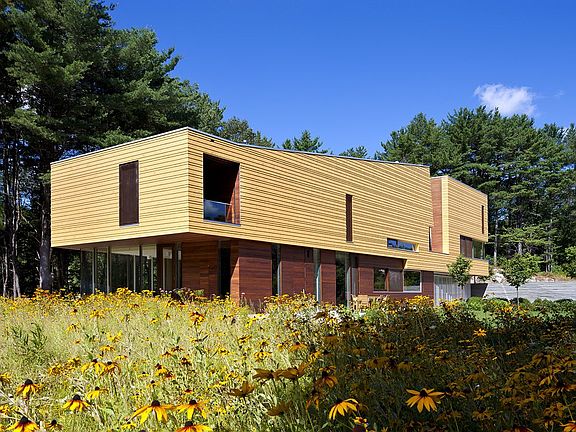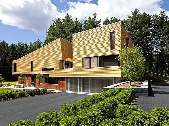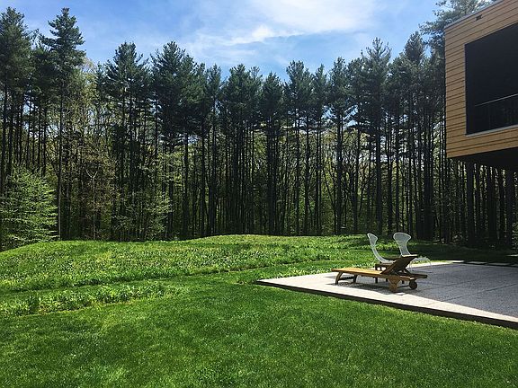 Nestled into a clearing in a pine forest, this 9± acre custom-designed Contemporary residence is an unexpected retreat at the end of a long drive. An extraordinarily functional work of art, the house was designed by Actwo Architects (formerly Andrew Cohen Architects) with the input of the current owners and executed by Merz construction. The design accomplishes the goal of combining entertaining spaces for large parties with intimate spaces for the homeowners. Interior and exterior courtyards, walls of glass, decks and skylights come together to create a floor plan that takes advantage of the outdoors in every part of the house. Currently configured as a three-bedroom residence, the house boasts two spacious offices that could be converted into two more bedrooms, if desired, as the septic system is designed for six bedrooms. The master suite can be closed off from the rest of the house and includes his and hers closets and dressing rooms, cedar closets, and separate water closets. A sleeping porch with retractable screens is available off the master. The entertaining spaces, kitchen and family room on the main floor flow beautifully and each has direct access to the outdoors. The house was built with eco-friendly features such as bamboo and Ipe flooring, geothermal wells for heating and conduits in place for future solar adaptation. Other surprises include a third floor spa and gym, a three-car garage with a hangar-style garage door, an outdoor fireplace, outdoor shower and additional storage garage under the parking court. This property is an unmistakable triumph of contemporary design.