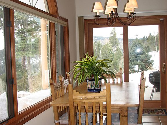 Enjoy panoramic views of the Angel Fire Ski Mountain and the Moreno Valley from this fabulous 2500 square foot 3 bedroom, 2.5 bath, 2-car garage home on 10 acres bordering Carson National Forest. The many outstanding features of this home include exterior stucco finish, radiant floor heat, a wood-burning fireplace in the den and a wood-burning stove in the living room, a spacious master suite with walk-in closet and office niche. This lovely home is being offered fully furnished.