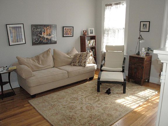 Italianate style buildingPleasant bright apartmentTall windowsCast iron enamel tubLarge tile bathroomGood storageKitchen with eating area