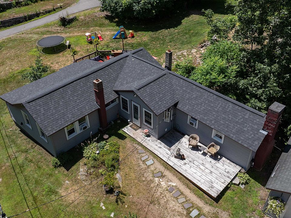 Tucked into the rural charm scene of Lyndeborough and abutting conservation land at Curtiss Dogwood State Natural Area with 13 acres of walking trails, this home offers single level living in a peaceful setting. Hardwood floors run through much of the main living space, where a bay window draws in daylight and a wood-burning stove rests afront a full stone wall, adding texture and warmth to the room. The eat-in kitchen is equipped with a stainless steel refrigerator and stove while opening out to a wraparound deck, offering a relaxed transition to the outdoors—perfect for tending to a small garden or watching the seasons shift. A separate laundry room with linen storage adds ease to the everyday, while the detached one-car garage offers space for a workshop or extra storage. Just a short drive from Milford, Wilton, and Route 101, this is a home that feels tucked away yet close to everything that matters. **Offer Deadline 5pm Sunday 7/27**