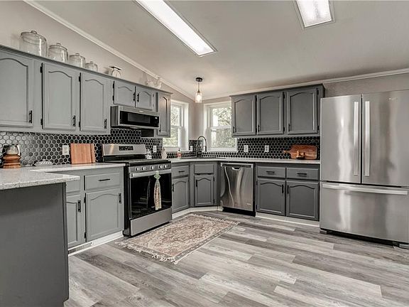 Gas stoveNewly stained front porchWalk-in closetsPrivate back deckLarge kitchenStainless-steel appliancesStunning quartz countertops