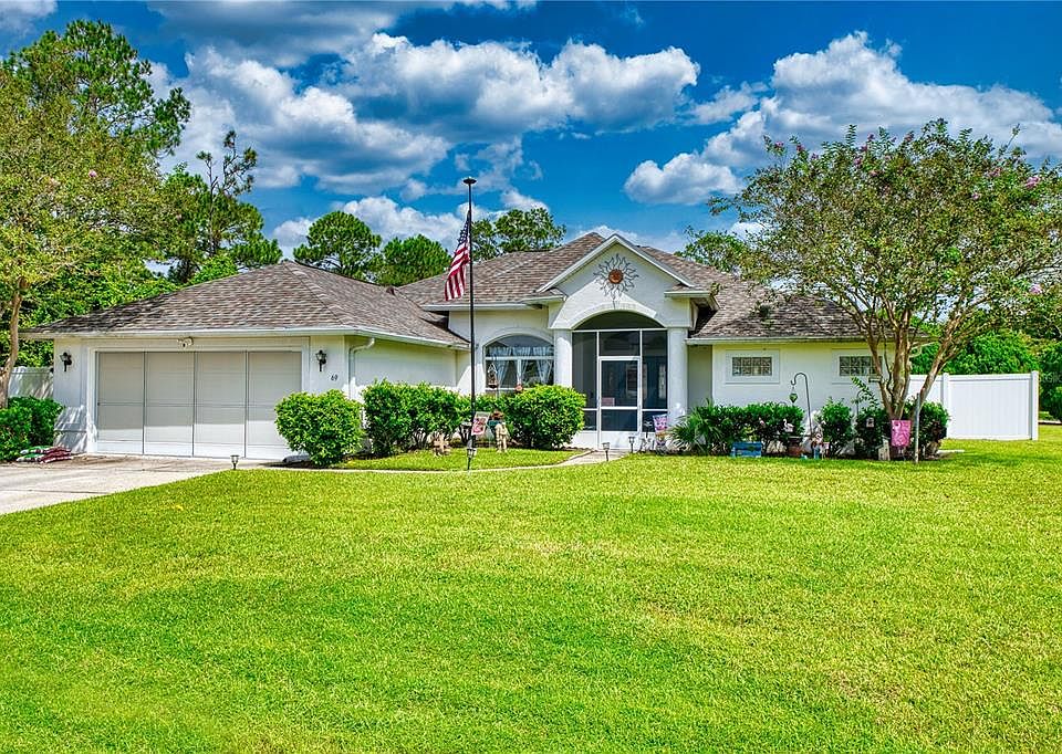 This beautiful pool home resides stately on an oversized corner lot in one of Palm Coast’s most desirable neighborhoods. A fully fenced backyard offers both privacy and functionality, with a dedicated area to store your RV, boat, or trailer securely behind a large double gate. An oversized driveway provides ample parking for guests in addition to the attached garage, which includes a Level 2 EV charger. Outdoors, enjoy a resort-style electric-heated pool with spillover spa and spacious screened enclosure—perfect for entertaining or relaxing day and night. Inside, the open floor plan features tray ceilings, decorative niches, and abundant natural light. The kitchen shines with granite countertops, upgraded wood cabinetry with crown molding, a breakfast bar, and casual dining nook overlooking the pool. The owner’s suite is a private retreat with its added sitting area, pool access, and a spa-inspired bath featuring double granite vanities, jetted tub with glass block detail, and a walk-in shower with glass surround. With thoughtful upgrades throughout and plenty of space for your toys, this home combines elegance, convenience, and the best of Florida living.
