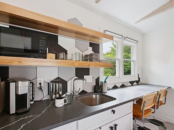 Stylish well-appointed bathroomRich hardwood floorsExposed wood beamsWell-equipped kitchenetteWalkable neighborhoodsSoaring vaulted ceilings