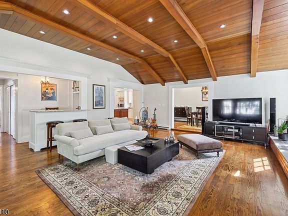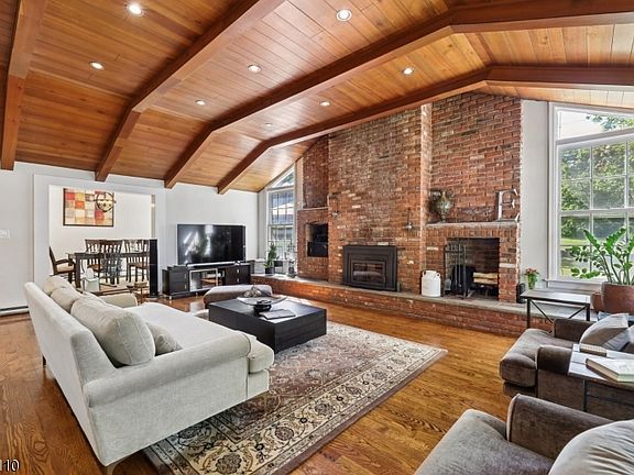 A Great Notch classic, this Custom Colonial offers timeless character alongside thoughtful updates in one of Little Falls' most sought-after neighborhoods. The centerpiece of the home is defined by an expansive great room with cathedral wood-beamed ceilings, a dramatic brick fireplace "wow wall" with oversized windows that bring in abundant natural light and a home bar. The dining room with sliding doors opens directly to the patio, creating an easy connection to the bucolic outdoors. A seamless flow connects the dining area to the updated light-filled kitchen finished with granite countertops, pantry, desk area, SS appliances, a center island and cabinets galore providing functionality. Upstairs and down, the layout offers four flexible bedrooms that can serve as guest spaces, private retreats and home offices with a full basement for laundry & storage. Primary suite with fireplace currently located on main level. Additional highlights include hardwood floors, closet space a plenty, a two-car attached garage on Notch Park Road offering driveway-direct kitchen access. The landscaped corner lot adds curb appeal and large yard space. Steps away are peaceful nature trails for daily walks, hikes or bike rides. NYC only 16 miles away, a bus stop within walking distance and Montclair State University train station, the location is a commuter's dream. A night out in Montclair or a hike through the Mills Reservation, you are minutes from both city energy & natural escapes.