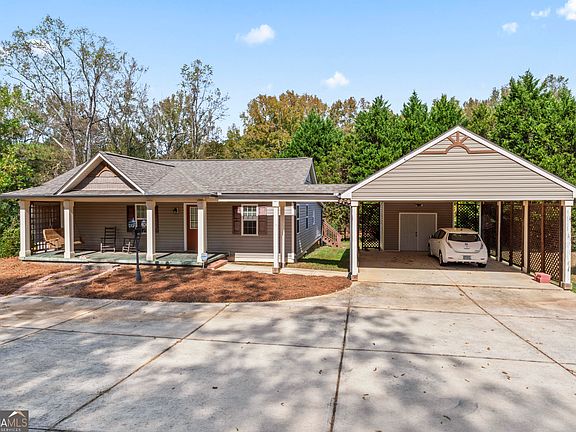 Located less than a mile from the new Kellytown Publix, this charming 2-bedroom, 1-bath residence nestled on a spacious 1.6-acre lot at 69 Roseberry Drive. This property offers the perfect blend of privacy and country charm. First you may notice the large front porch, perfect for outdoor relaxing. Inside, you'll find a large living room and a separate dining room, ideal for entertaining. The kitchen features abundant cabinetry, ample counter space, and natural light streaming through multiple windows. The laundry room is generously sized with plenty of shelving plus, the washer and dryer are included, making move-in a breeze. Outside, enjoy your private fenced backyard, perfect for your pets and a large back deck.The 2-car carport includes an attached workshop area, ideal for hobbies or extra storage. With a newer roof, this property is move-in ready and full of potential for your personal touch.