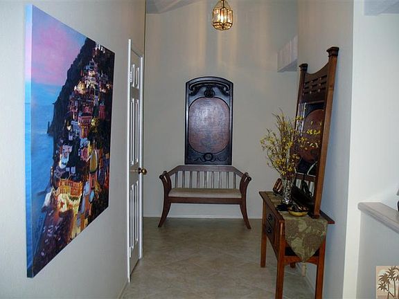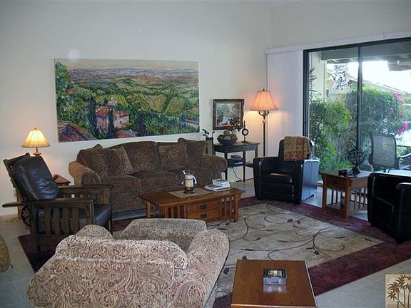 Tranquil lakeside setting with spectacular southern views. Gaze across a pristine lake through stately palms to a back-drop of the Santa Rosa Mountains. Are you looking for privacy? You'll find it while relaxing on your spacious patio, or preparing an exquisite meal on the built-in gas BBQ. This Laramie model condo features 2 BR plus a Den and 3 1/4 BA. The Kitchen has been renovated and updated with some new stainless appliances: oven, microwave, and double fridge. Tile flooring throughout. Tastefully appointed with quality furnishings included.