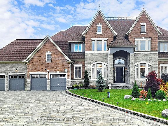 Experience ultra-luxury living in this breathtaking showstopper set on a premium 1-acre pie-shaped lot in an exclusive estate court! This grand 4-car garage resdience offers architectural presence that feels like a modern castle, crafted with uncompromising quality, artistry, & design. Inside, enjoy 6,625 sq.ft. of refined living (+ ~3,300 sq/ft unspoiled basement ready for customization). Every inch displays couture craftsmanship: exceptional trim work, elaborate mouldings, custom wainscoting, designer wall panels, waffle & coffered ceilings, & magazine-worthy detailing throughout. Dramatic volumes include a 22ft cathedral foyer & family room, 11ft ceilings on the main, 10ft on the 2nd floor, & 9ft in the basement. Brilliantly illuminated by over 200 pot lights & 20 crystal chandeliers, the home showcases custom floral-pattern ceiling designs all throughout. The main floor includes a private nanny/in-law suite complete with its own 3-piece ensuite bath & walk-in closet. The heart of the home is the custom chef's gourmet kitchen, featuring a wide center island, premium built-in appliances, extensive cabinetry, marble surfaces, & open sightlines into the sunlit breakfast area & luxurious family room. A stunning symmetrical backlit onyx feature wall anchors the living space, complemented by premium marble, crown mouldings, & oversized windows overlooking the vast estate grounds. Upstairs, discover 5 spacious bedrooms, each with its own private ensuite, designed with exceptional finishes & elegant ceiling treatments. The primary bedroom retreat impresses with a grand sleeping area, large lounge/sitting zone, a massive walk-in closet, & a spa-inspired ensuite that embodies pure luxury. Outside, the rare 1-acre private estate lot offers endless potential-pool, tennis court, cabana, outdoor kitchen, or luxury garden expansion. With open green vistas & privacy on all sides, this property is the ideal canvas for resort-style outdoor living. A true one-of-a-kind masterpiece!