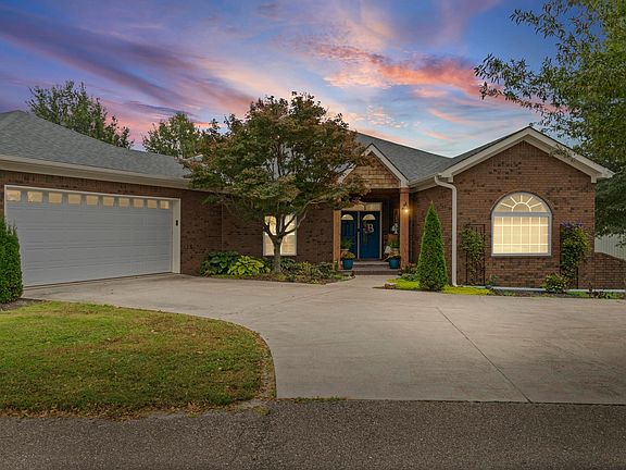 Experience the perfect blend of elegance and serenity in this custom lakefront home, nestled at the end of a picturesque tree-canopied drive, ideally positioned on a peninsula surrounded by shimmering lake views. This one-of-a-kind custom home blends comfort, and tranquility. The cedar-clad entry opens to an expansive open-concept living, dining, and kitchen area with soaring ceilings, a stone fireplace, and walls of windows showcasing breathtaking water vistas. The gourmet kitchen offers a large island, stainless appliances, and abundant cabinetry for entertaining in style. The elegant primary suite features private veranda access, a spa-inspired bath with jetted tub, walk-in shower, and generous closet. Two guest rooms and a refined full bath complete the main wing. Additional highlights include a large laundry with storage, a heated and cooled two-car garage with mini-split, and a private office with half bath. Outdoor living shines with a covered veranda overlooking the resort-style pool, sundeck, and private dock. Two insulated shops—one with RV hookup—plus new roof, updated HVAC, generator transfer switch, and tornado shelter complete this exceptional lakefront sanctuary.