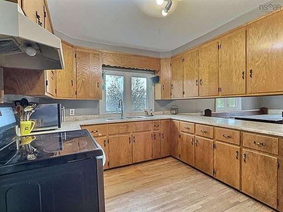 Visit REALTOR® website for additional information. Charming and private, this 3-bedroom home sits on over an acre of beautifully landscaped property just a Short walk from beach access. From the cozy covered deck with a lovely view, step into the bright, sundrenched porch/sunroom with convenient laundry. The inviting country kitchen features abundant cupboards and counter space open to the dining area, which flows into a living room and den with gleaming hardwood floors-the den could easily serve as a 4th bedroom. A full bathroom completes the main level, while upstairs offers three spacious bedrooms. Upgrades include PEX plumbing, a 2020 hot water tank, fiberglass oil tank, 100-amp breaker panel, vinyl windows, upgraded attic insulation, and spray-foamed basement walls. Mature landscaping, a small orchard with a variety of fruit trees, flower gardens. Outdoors, enjoy and outbuildings-a shed/chicken coop with a covered run and a barn complete with an outdoor sink. A truly delightful country property with space, privacy, and character!