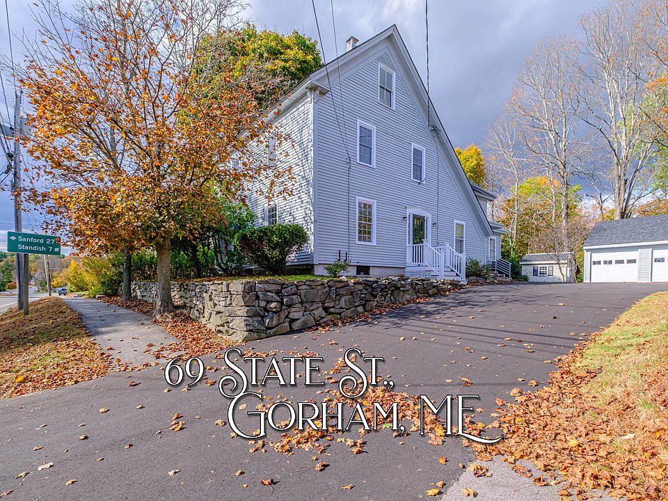 Step into timeless charm where historic character meets modern updates in this lovingly maintained Federal-era home.. Built around 1800, this residence showcases the craftsmanship of a bygone age, preserved and enhanced by the owner who was a master carpenter. Every detail reflects his artistry, from the hand-crafted kitchen cabinetry and built-ins to the milled baseboards and trim. Wide pine floors flow throughout, setting a warm, inviting tone. The kitchen blends function and heritage with custom wood cabinets, rich counters, and an eat-in area perfect for casual meals. A spacious dining room and cozy living room offer classic New England charm, while the updated first-floor bath adds modern comfort and includes a hookup for a stackable washer and dryer. Two large front rooms on this level provide flexibility, ideal as bedrooms, office, or den. Two staircases lead to the second floor, where the large primary suite offers a jetted tub and separate shower. A second generous bedroom overlooks the backyard and features a split bath design—sink and toilet in one space, and a separate shower and vanity in another, combining convenience and privacy. A separate room is hooked up for a second floor laundry area. Outside, enjoy summer dinners or quiet mornings on the covered porch off the kitchen, framed by stone walls and mature plantings. The backyard offers just the right amount of green space for play, gardening, or relaxation, and includes a two-car garage plus a shed for your tools and hobbies. Located in the center of Gorham Village you will enjoy the convenience of walking to restaurants, schools, town library, and shopping. This home is a rare blend of history, craftsmanship and warmth, ready to welcome its next steward.