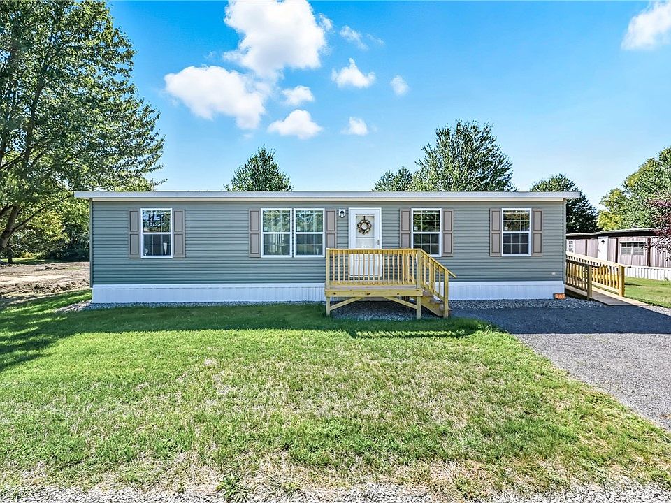 Beautiful manufactured 3 bedroom/ 2 full bath home located in the 55+ community of Summit Estates. Brand new and waiting for your finishing touches.This property was just completed and skirting, front porch, and covered side porch just added in June. This home is very spacious with light colors throughout. Appliance pkg. includes refrigerator, dishwasher, oven, and built in microwave. This is a split floor plan with private primary suite with attached full bath with walk in shower, as well as a walk in closet. Additional bedrooms are on the other side of the living area. Sliding doors from the dining area where you can build your future deck. Nice laundry room with storage.