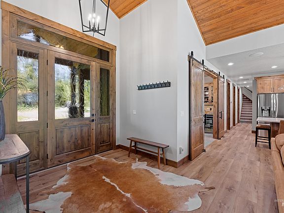 Welcome home to your mountain oasis. This custom five bedroom beauty is situated on 2+ acres overlooking the river valley south of McCall. Just a short drive from town, you will be greeted with a grand entry that flows into a great room designed for entertaining. Floor to ceiling rock fireplace, quartz kitchen counter tops, Thermador appliances, built in speakers and views of the Payette River valley will create a cozy space no matter the season. Easy single level living with a bonus room space over garage. Heated oversized garage has plenty of room for storing all the toys and the lot has room to add a shop if desired. Relax on the large covered deck in the quiet surroundings of the aspens while enjoying the fire pit or soaking in the private hot tub. Neighborhood has over 12 acres of common area for hiking and cross country skiing. Come experience everything that McCall has to offer- boating, fishing, biking, hiking, skiing, golf, boutique shopping, fine dining and more.