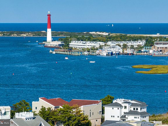 BAYFRONT - HIGH BAR HARBOR: Enjoy the most nautical and fascinating views available on LBI from this superior bayfront location on a giant-sized lot. Direct views of Barnegat Lighthouse, Barnegat Inlet, the wildlife refuge, Island Beach State Park, the harbor and more! More than 200' of pristine white sandy beach and the bay frontage at the end of the huge riparian grant is 331'! Renovate/update in place or build new. The existing living space footprint is approximately 2100sq' plus 430sq' of elevated deck footprint with plenty of room for westward expansion too. Home features 4 bedrooms, 2.5 baths, great room with dining area and granite topped kitchen, large family room with fireplace and vaulted ceiling, den, huge primary suite with phenomenal views, and a spa room with sauna, hot tub, and wet bar. Outdoor features include a large brick paved courtyard and driveway, attractive irrigated landscaping, and private driving easement. A more interesting and beautiful view does not exist!