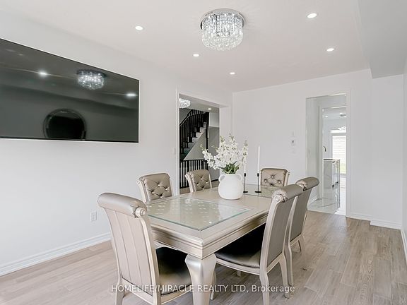 Welcome to this beautifully upgraded home located in Allistons prestigious Treetops community just minutes from Highway 400, Highway 27, the Honda Plant, schools, shopping, and Nottawasaga Golf Course.The main floor features a modern open-concept layout with quality flooring throughout (no carpet), pot lights, and a bright living and dining area that opens into a stylish kitchen. Enjoy quartz countertops, a matching backsplash, upgraded cabinet hardware, a butlers servery, and stainless steel appliances.Upstairs offers generous bedrooms, including a spacious primary suite with a walk-in closet and a private ensuite. The second-floor laundry is upgraded with custom cabinetry for added storage and function.A rare tandem double car garage provides extra parking or storage space, while the fully fenced backyard is perfect for kids, pets, and summer gatherings.This home is loaded with high-end finishes, meticulously maintained, and 100% move-in ready.