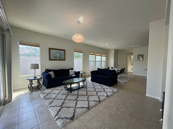 Welcome to Del Webb, a highly sought-after 55+ community! This bright and airy 2-bedroom, 2-bathroom home is available for annual lease. The open floor plan features an enormous patio with endless views, perfect for entertaining. The kitchen includes bar seating, a refrigerator, pantry, and an abundance of cabinets, making it a chef's delight. The spacious dining area is ideal for entertaining. The generous master bedroom offers access to the backyard, while the master bathroom features dual sinks, a shower, and a walk-in closet. 2nd bedroom is spacious. A convenient laundry room comes equipped with a washer and dryer, and solar panels add to the home's energy efficiency. Del Webb offers a fantastic lifestyle with a clubhouse, pools, tennis, pickleball, and much more. Don't miss out on this incredible opportunity to live in a vibrant community! **Pictures From Previous Listing**