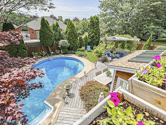 A great value! Cape Cod style charmer is nestled in a quiet neighbourhood of Niagara-on-the-Lake with easy access to the Heritage District, large open park spaces, the Niagara Parkway trails, many wineries, restaurants, golf courses, entertainment and everything that Niagara has to offer. Recently renovated in 2020 and 2025, the large foyer welcomes you to exquisitely finished living spaces. The main floor features a spacious living room with cathedral ceiling, floor to ceiling windows, skylights and an open gas fireplace and conveniently located private office/den near the front door. The chef inspired custom kitchen boasts gleaming white cupboards surrounding the large quarter-sawn oak in walnut stain island, Lapitec 100% sintered stone countertop with undermount sink, dishwasher and ample storage. The open dining space is perfectly located in the kitchen for entertaining your guests. Upgraded appliances include 36" Thermador gas cooktop and oven, and a 48" x 84" fridge/freezer. Sliding doors from the kitchen open to a covered BBQ cabana and a second outdoor eating area. The Livingroom patio doors connect you to the fully landscaped private backyard with large mature trees, shrubbery and plantings surrounding the in-ground saltwater pool, a wraparound patio with retractable awning and deck with pergola. Second level has two well appointed bedrooms. The fabulous master bedroom has an adjoining dressing room with closets, luxurious five piece ensuite, private balcony and laundry facilities. The finished basement is complete with family room with wood stove, wine cellar, recently updated bathroom, 2 more bedrooms, pantry and storage area with rough in for a kitchenette for a variety of uses. A perfect home for family gatherings and entertaining. Previous updates: Basement Bedrooms and Bathroom 2025, Main Bathroom Tub/Surround 2024, AC 2023, pool liner 2017, furnace 2017, pool gas heater 2023 with salt water converter and safety cover 2020.