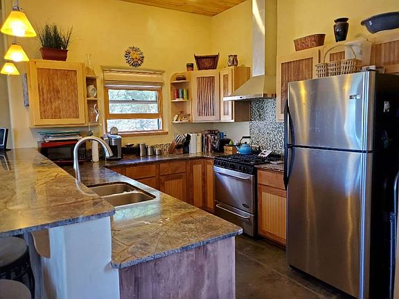 Go green, and enjoy social distancing. You will never want to leave. This solar Gem is packed with a multitude of green features, custom south western design, stained concrete floors and energy efficient appliances, R52 ceiling, and R38 in the walls add to the package. The views are stunning and you will want to relax on your covered patio and watch the sunset. Take a stroll and enjoy wild life, big skies and a private setting. The location is convenient to national forest for all your out door adventures. A scenic drive takes you to Questa, Red River, and Taos.