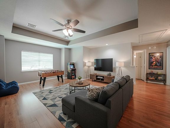 Enjoy resort-style living in your own backyard with a sparkling inground pool and expansive fenced yard perfect for year-round fun and entertaining. Host memorable dinners in the formal dining room, or work in comfort from the private home office. The island kitchen is a chef's dream with granite countertops, stylish tile backsplash, crisp white cabinetry with upgraded pulls, oversized drawers, stainless steel appliances, including double gas convection ovens, and a walk-in pantry plus a butler's pantry for extra storage. Relax in the spacious family room featuring a cozy gas log fireplace and poolside views. The first-floor primary suite offers a huge walk-in closet and a spa-inspired bath with soaking tub and separate walk-in shower. Upstairs, discover a game room and three additional bedrooms, all generously sized with large closets. Pool maintenance is included, so you can move in and start enjoying the lifestyle.