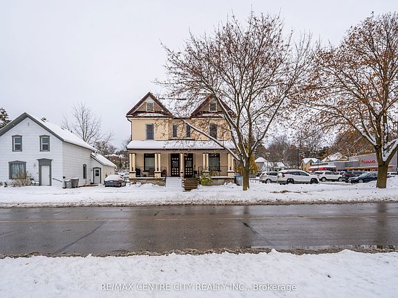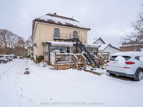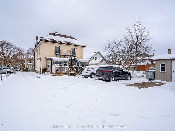 A solid brick fourplex offering a reliable income stream with significant upside potential. The property includes two main-floor one-bedroom units, each featuring in-suite laundry, a bright rear sunroom, and access to a private deck. At the back of the property you'll find dedicated parking for tenants, along with a small storage shed.The upper units span the second and third storeys and each provides three bedrooms, in-suite laundry, and its own forced-air gas furnace and central air system. All four units are separately metered for water, gas, and hydro, making ongoing management straightforward.The building has been well cared for, highlighted by a durable steel roof. Two hot water heaters are owned and two are on rental agreements through Reliance. All tenants have been long-term, with room for rent growth over time.This is a strong opportunity to add a stable and well-structured multi-residential asset to your portfolio in a desirable small-town setting.