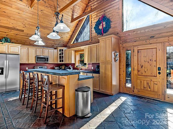 Discover the perfect blend of rustic charm and modern comfort in this expansive log home, offering nearly 4,000 square feet of living space. Enjoy privacy and mountain views from the wraparound deck or relax in the hot tub. This home features 3 bedrooms and 2 bonus rooms for versatile living options, a wet bar ideal for entertaining, cozy fireplace and soaring high ceilings. High end finishes and ample entertaining space throughout. Ample parking space and a detached 2-car garage. The exterior has been recently painted and stained to ensure low maintenance for years to come. With no restrictions, this property is perfect as a private residence, a second home, or a short-term rental investment. Nestled in a peaceful setting just minutes from downtown Asheville, this mountain retreat offers endless possibilities. Don’t miss out on this chance to enjoy mountain living at its finest!